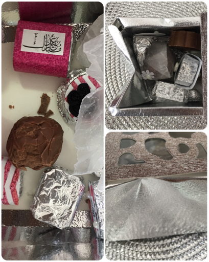 I sent about 7 images, that showed the extent of almost ALL the damaged boxes and chocolates. I received no reply, no apology, no offer for a discount, no offer for a refund, nothing at all.