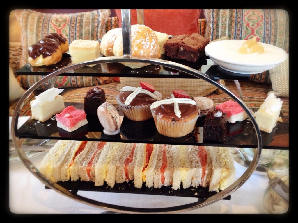 A booking for two for Tea by the Sea at the Leopard Bar meant we could enjoy our tea in the sunshine, and devour our treatsย indoors – on comfortable sofas with too many cushions. The halal-friendly option had salmon, cheese & tomato and egg & mayo sandwiches accompanied by two tiers of sweet treats. The verdict: I would definitely return. Even if only for their sandwiches; they were divine!